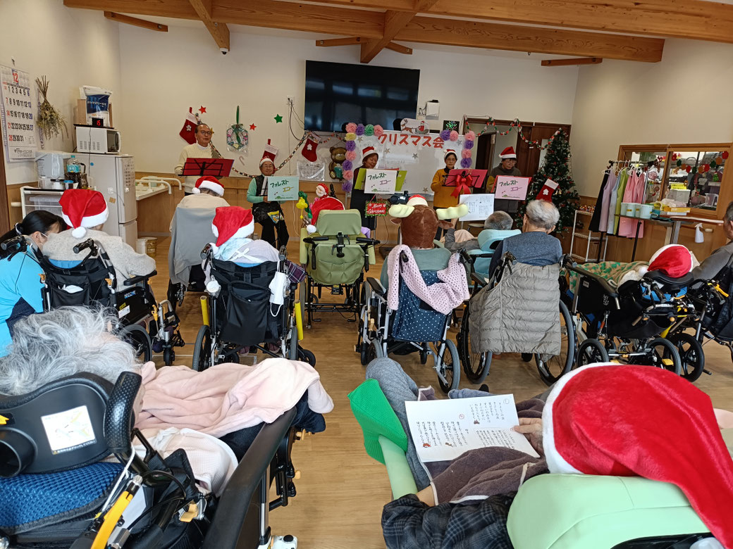 ボランティアの方によるオカリナ演奏にあわせて、利用者様でクリスマスの曲を歌い、あたたかな時間を過ごしました。